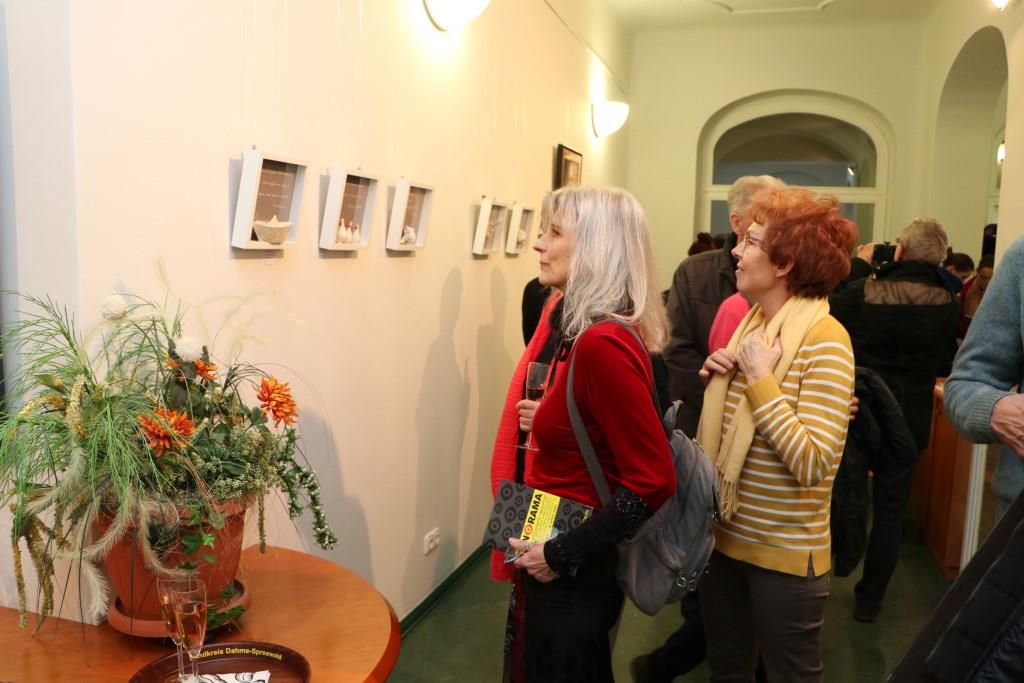 Kunst für die Augen, für die Ohren, für den Gaumen, fürs Gemüt und für den Geist gab es am gestrigen Mittwochabend bei der Eröffnung der Gemeinschaftsschau „Panorama“ mit 37 Künstlern aus dem Landkreis Dahme-Spreewald. Zahlreiche Kunstschaffende mit ihren Familien und Freunden sowie Interessierte hatten sich zunächst im Landratsamt in der Reutergasse und anschließend in der Lübbener Rathausgalerie eingefunden, um die künstlerische Vielfalt zu genießen. Für die musikalische Umrahmung sorgten die Schülerinnen des Cottbuser Konservatoriums Franca Schötz und Selma Wandke an den Konzertgitarren sowie Larissa Klaus an der Harfe.