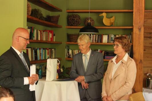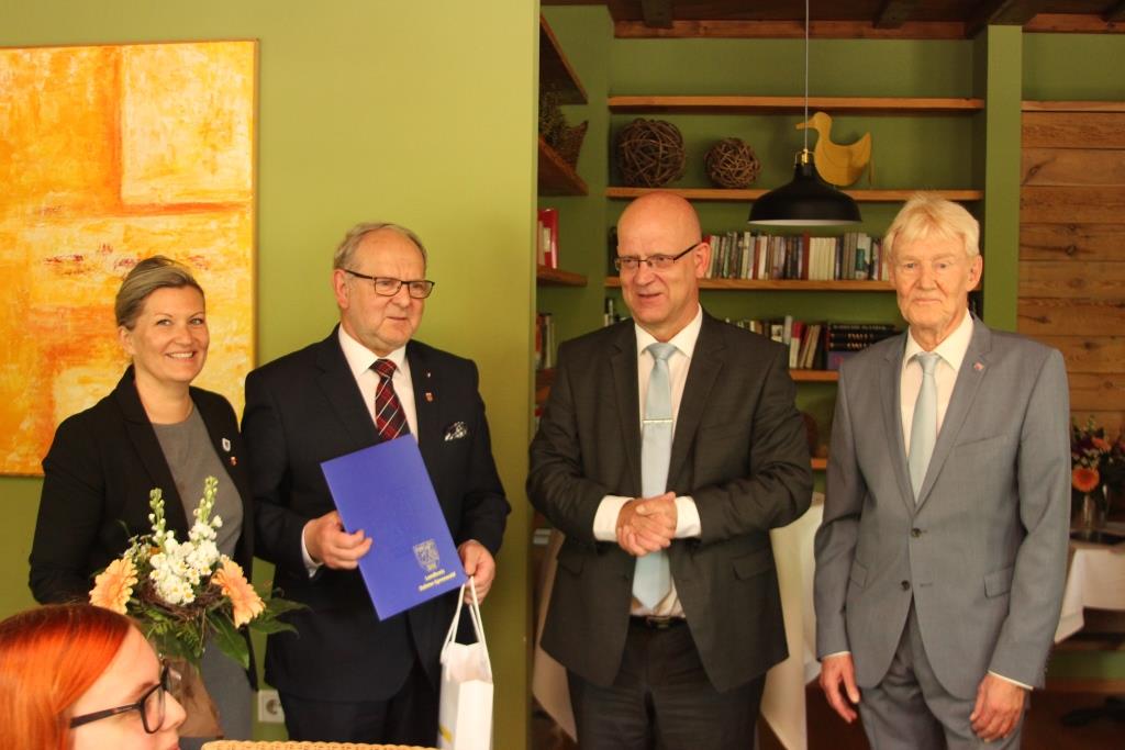 Als Zeichen einer aktiven Europapolitik in der Dahme-Spreewald-Region ehrten der Landrat Stephan Loge und Kreistagsvorsitzender Martin Wille heute im Strandcafé Lübben sechs engagierte Persönlichkeiten aus dem Landkreis Dahme-Spreewald.