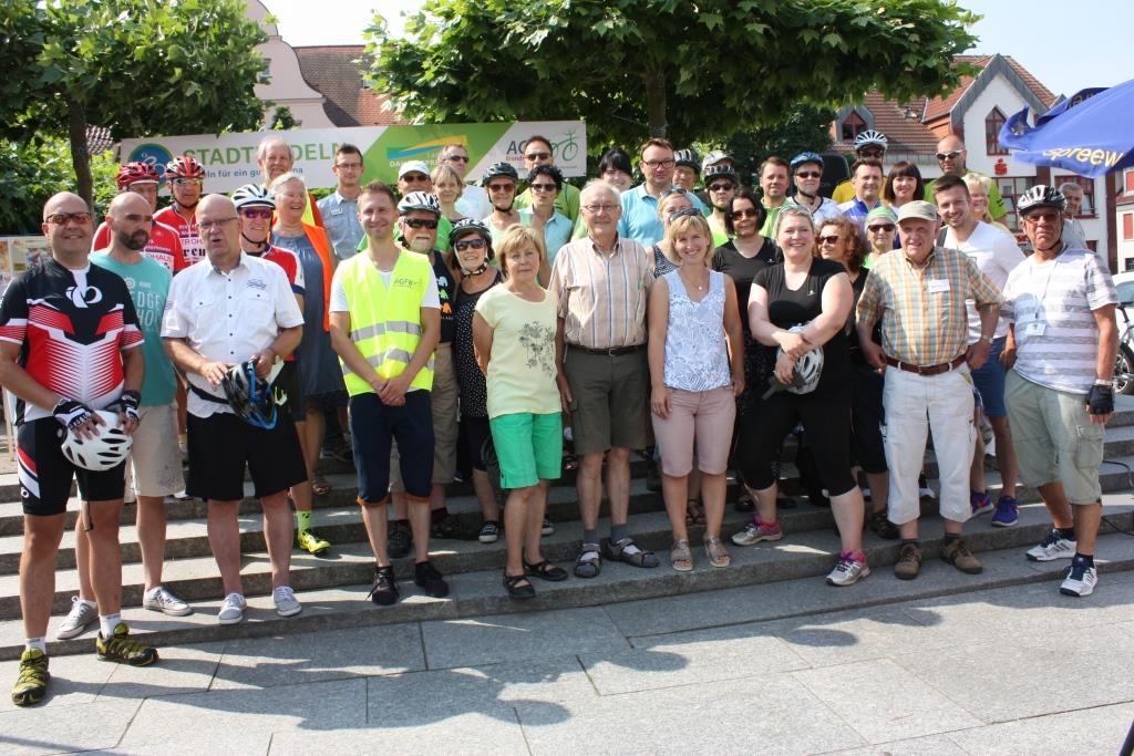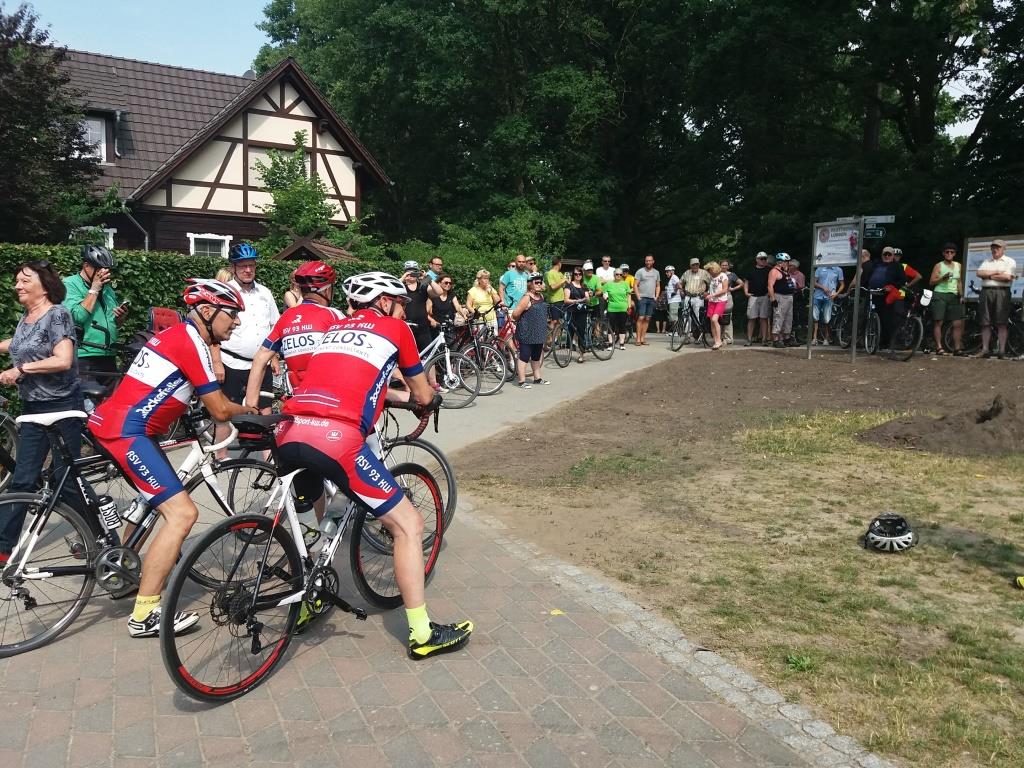 Angeführt von Matthias Städter, (Klimaschutzbeauftragter der Stadt Lübben) radelten alle nach der Eröffnung zur 15 km Fahrradtour rund um Lübben los. Es ging vom Markt zur Schlossinsel, über die modernisierte Brücke Lehnigsberger Weg nach Hartmannsdorf und weiter über Lubolz zurück nach Lübben. Nach einer Stunde, sichtlich glücklich etwas für den Klimaschutz getan zu haben, trudelten die Radler wieder auf dem Marktplatz in Lübben ein.