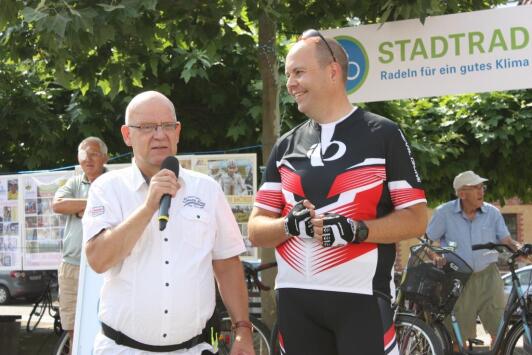 Lars Kolan Bürgermeister der Stadt Lübben unterstützte die Aktion bereits kräftig durch seine Anreise mit dem Fahrrad von Golßen aus. „Gemeinsam mit dem Landkreis Dahme-Spreewald wollen wir möglichst viele Fahrradkilometer sammeln. Am Ende werden die drei fahrradaktivsten Radler gekürt.“