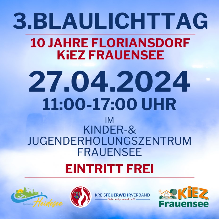 Unter dem Motto "Jeder kann helfen" möchten wir die Vielfalt der Blaulichtorganisation sowie die Institutionen des Brand-, Katastrophen- und Zivilschutzes darstellen, deren Arbeit präsentieren, sowie Netzwerke herstellen. Zusätzlich feiern wir 10 Jahre das Unfallpräventionszentrum "KiEZ Frauensee".